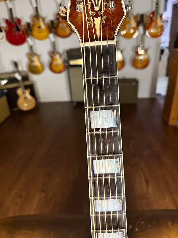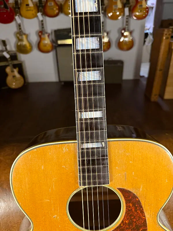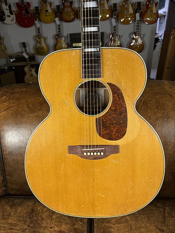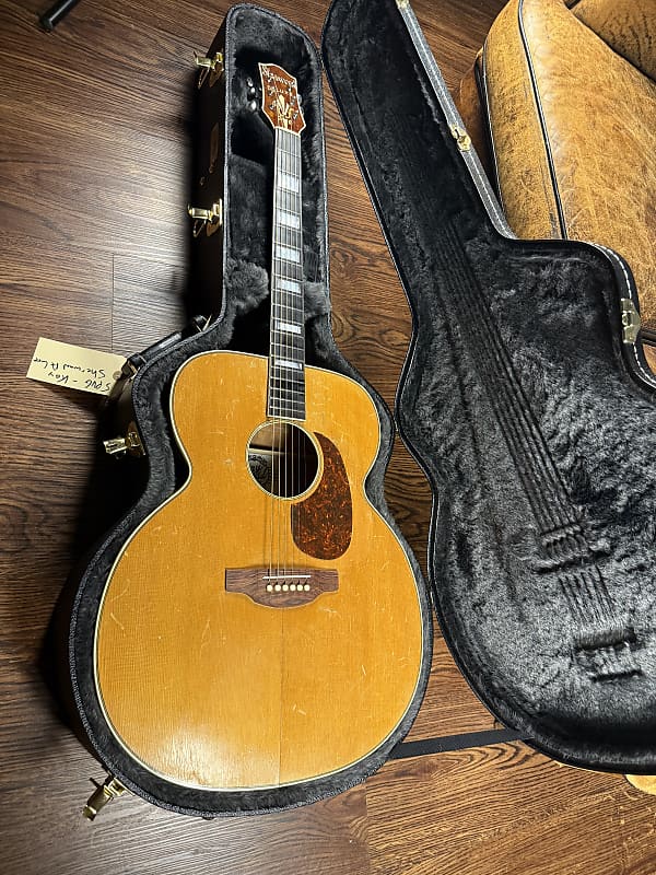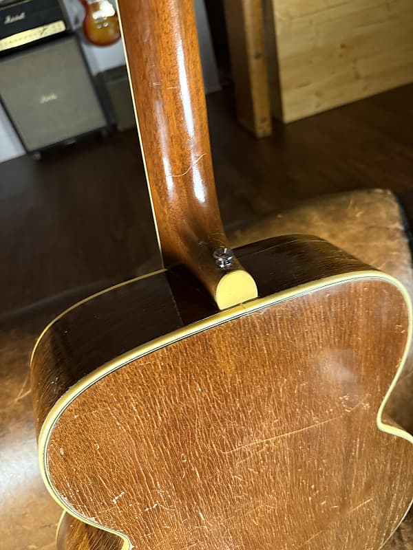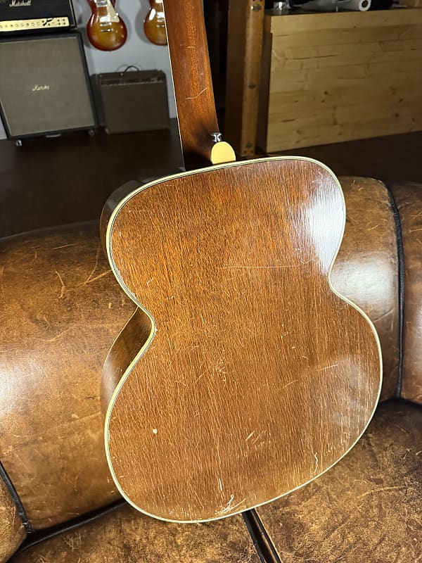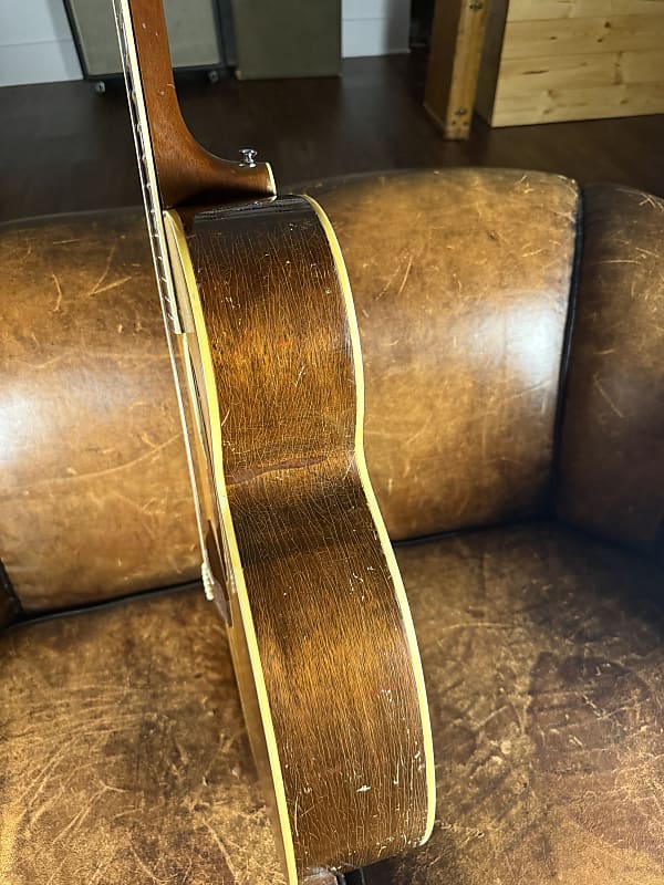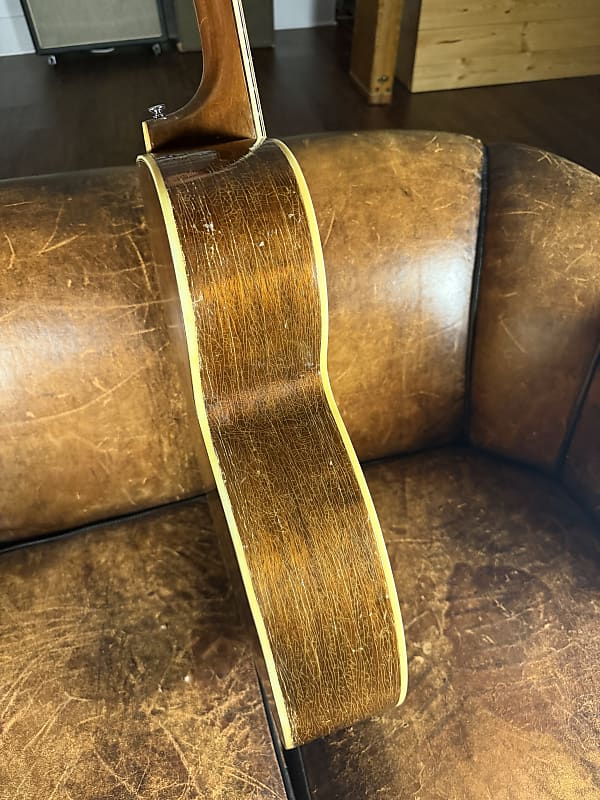 This started life as a 1950's Kay Sherwood De Luxe. A sort of "budget" model that in its original state brings $600-700. This guitar, however, was rebuild by Stay Gold Guitars converting it to X bracing. I believe it also had a neck reset at that time and pickguard replaced. It sounds absolutely glorious and plays great. Comes with a brand new hard case that fits it perfectly.