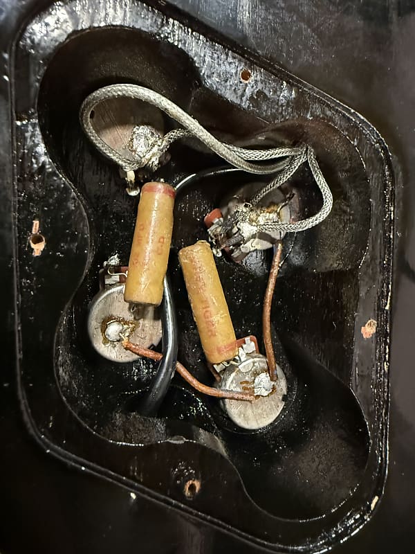 1955 Gibson Les Paul Custom in a very high quality black refinish. This guitar was just pro setup and is playing and sounding great. I don't see any signs of repairs, but it is impossible to be certain. The serial is a non-original 5-1955 redone in the proper font. This does have a few parts replaced: bridge (early 60's), tailpiece (original included, broken), tuners (originals included), volume pot, switch/tip and poker chip. The pickups are original and sounds great. Weight is 9 lbs 4 ounces. The guitar has also been very nicely refretted. Comes with a late 60's case.