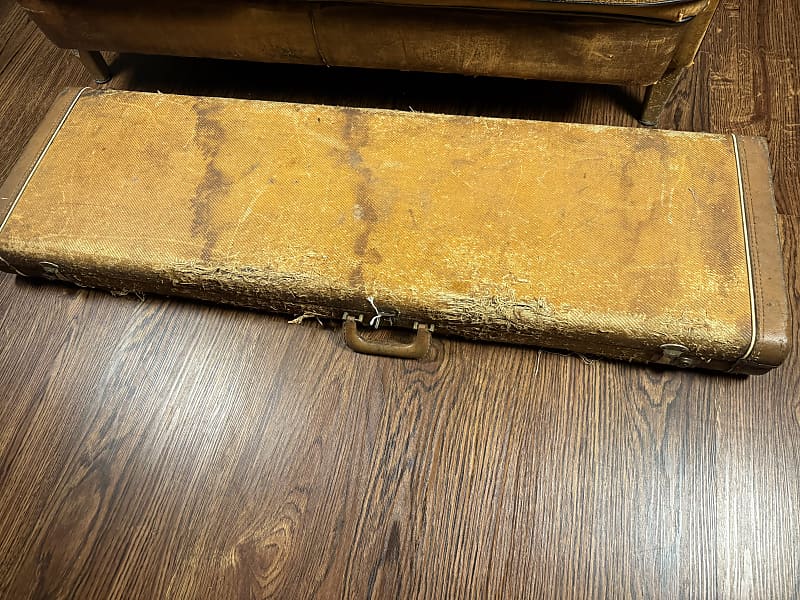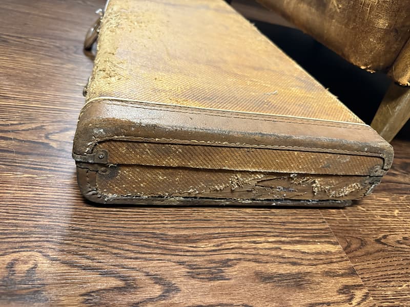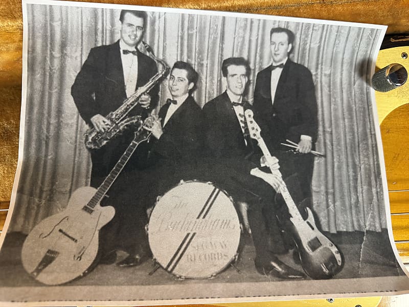 1959 Fender Precision Bass straight from the originals owners family. Mike Clark bought this Bass brand new and used it in several bands including one called "The Buckinghams" (see photo). After retiring from band life he taught lessons with this bass in NYC his entire life. I acquired this bass from Mike's son, it had not been used in a decade since Mikes passing. All it needed was a lot of fret polishing and a very slight truss rod adjustment. This bass is 100% original. It is playing well. The factory frets are a tad low, but nothing to seriously worry about. Included is the original and equally beat up tweed case, the covers, and a copy of the photo of Mike with the band.