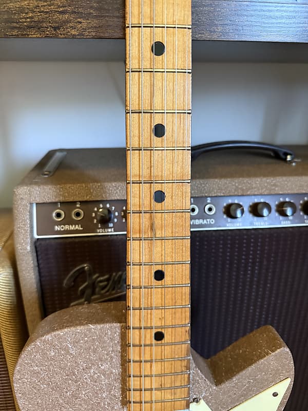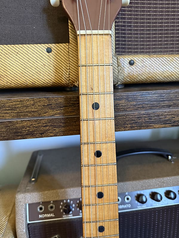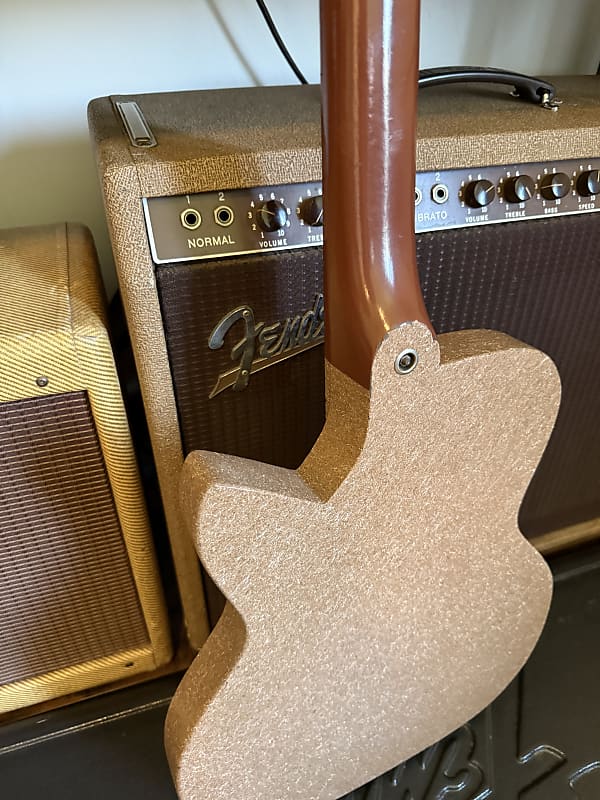 1959 Kay Sizzler (year is approximate). This guitar had a dead pickup on arrival, so it was sent out to be expertly rewound by Tom Brantley. All else is original except for one tone cap. The guitar was just professionally set up, and sounds/plays great. Comes with a gig bag that will be padded properly for shipping.
