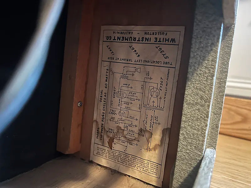 1961 White Model 80. This is a very rare amp, that is essentially a tweed Princeton Circuit. The amp was made by Fender intended as a secondary product line to sell to teaching studios. So as not to undercut franchised Fender dealers in the same town, a special studio-only line (consisting of one steel guitar and amp model) was offered wholesale to studios only. The amp is all original except for normally maintenance caps and the speaker.