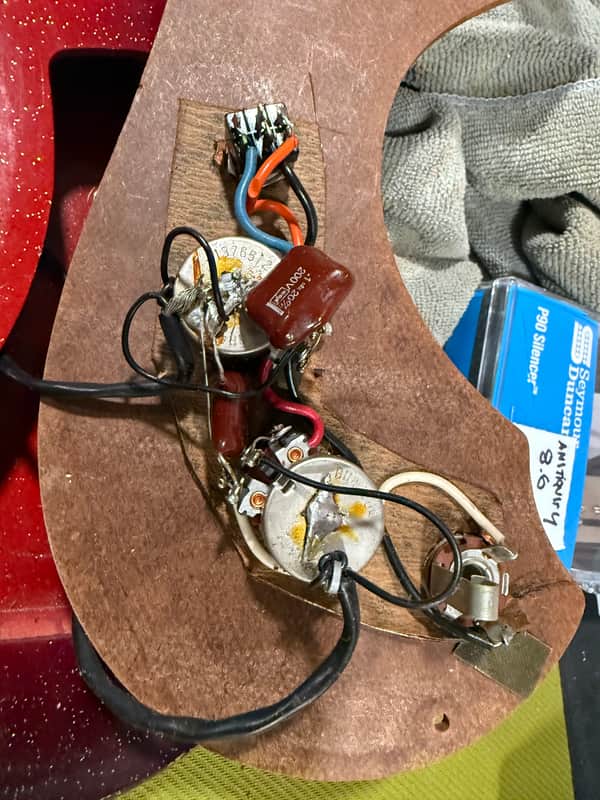 1965 Silvertone 1457. This would have originally come with one of those amp in cases, but I do not have the case. This guitar plays and sound great. A lot of these have a ton of fret buzz because they don't have truss rods, this one does not. The finish is in excellent shape as well. It is all original. Comes with a soft case that will protect it well.
