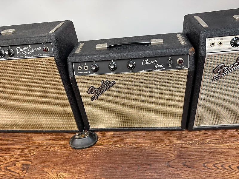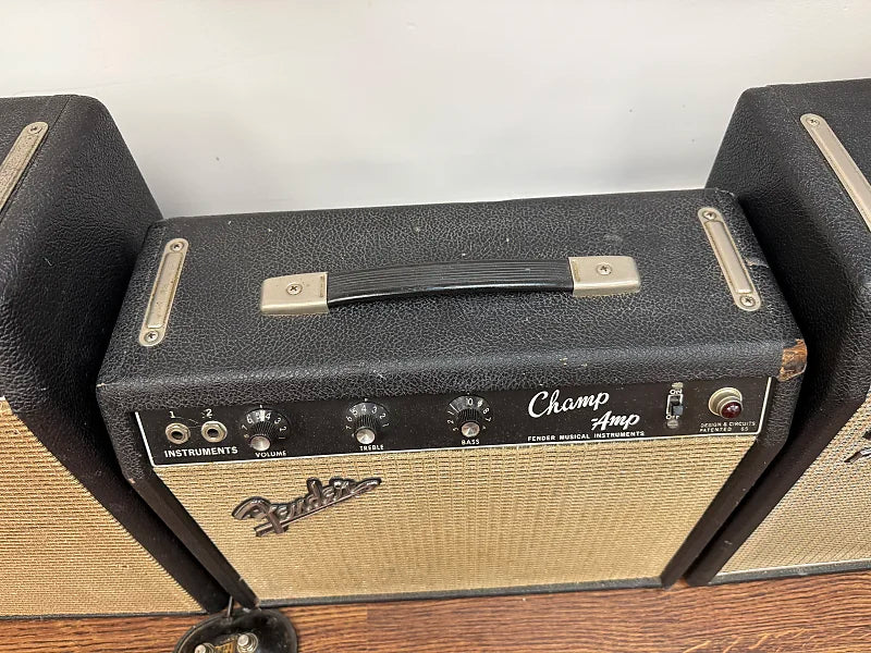 1966 Fender Champ Amp. The perfect bedroom or apartment amp. The speaker has been replaced. Everything else is original except for normal professional maintenance (3 prong chord, some caps).