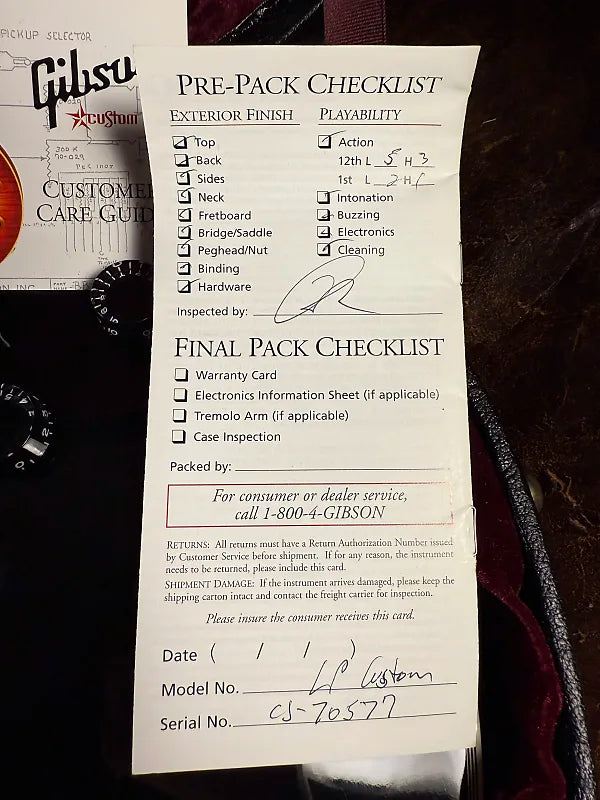 2007 Gibson Custom Shop Les Paul Custom. This guitar is all original and in very good condition. Just pro setup, it plays and sound great. I do not have the COA, but it does have all the other Gibson paperwork including the serialized spec sheet. Also comes with the original case.