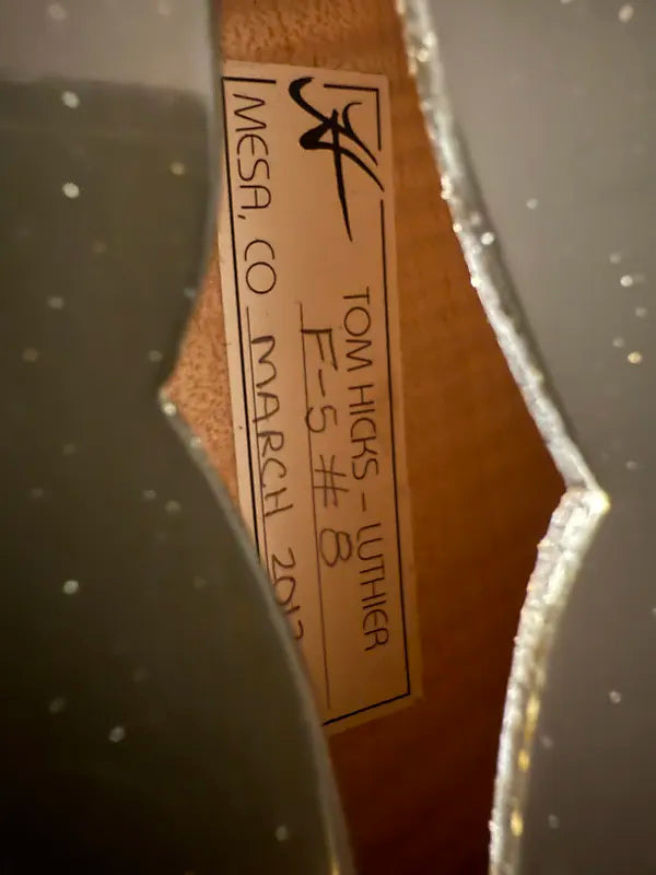 Tom Hicks F-5 Mandolin. Great playing and sounding. It is certainly a looker too. Construction seems great on this. Comes with a very nice "Calton" style hardcase that is original to the guitar. No issues at all.