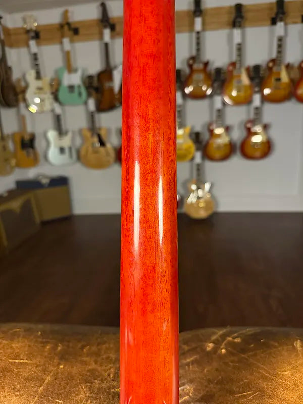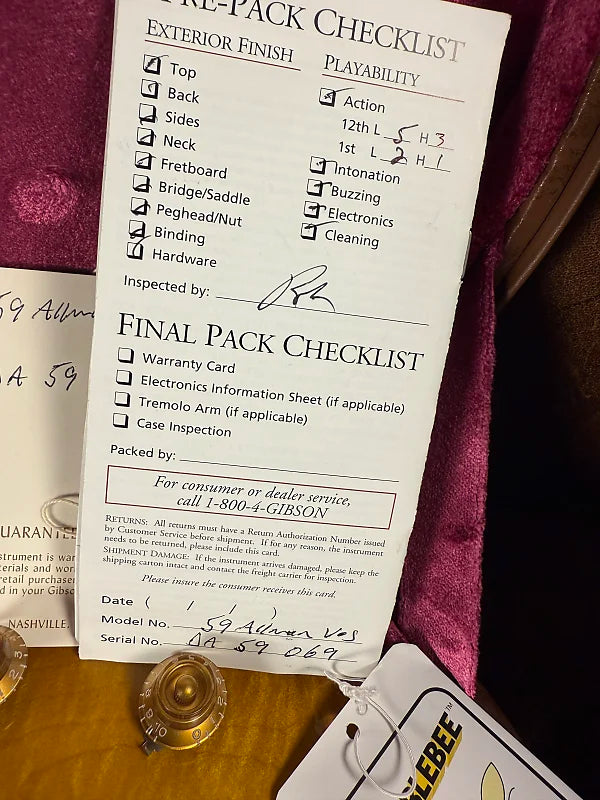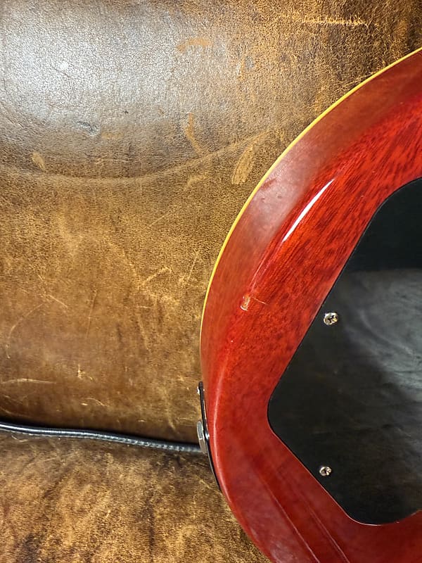 This one has a killer top that is better than other examples of this run I have seen. Recently pro setup, it plays and sounds great. There is one ding on the side (photo'd) and one of the knobs has some internal cracks. 100% original with no modifications. The frets are in excellent shape. Comes with the original case and most of the paperwork (it is missing the blanket cover type thing and the COA). The owner is confident he will find the COA and get it to me (a photo copy of it is included).