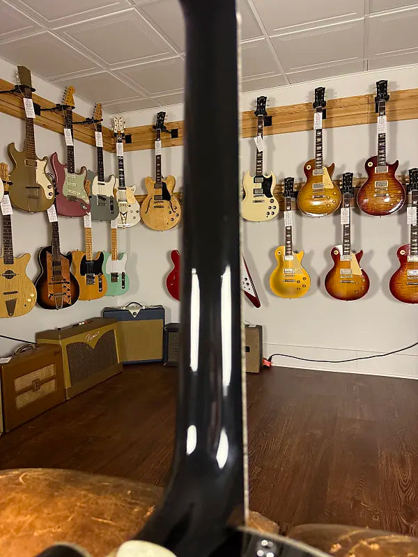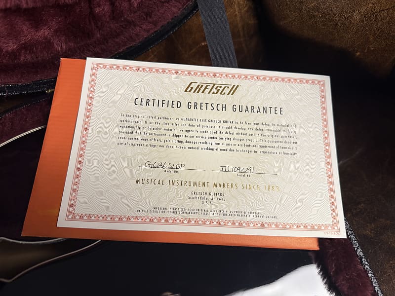 2017 Gretsch Brian Setzer Signature Phoenix Model. This is essentially a black/silver white falcon with less knobs. TV Jones classic pickups sound great. The guitar is mint aside from the strap buttons being replaced with the locking kind. Just pro setup with 11's, it plays and sounds great. Comes with the original case and all paperwork.