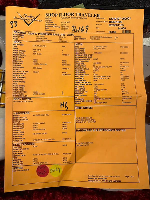2021 Fender Custom Shop '57 Journeyman Precision Bass in see through blond finish. This bass is a stunner and is 100% original/in excellent condition. Plays and sounds great. Comes with the original case, COA and all case candy. Please see last photo for full spec sheet.