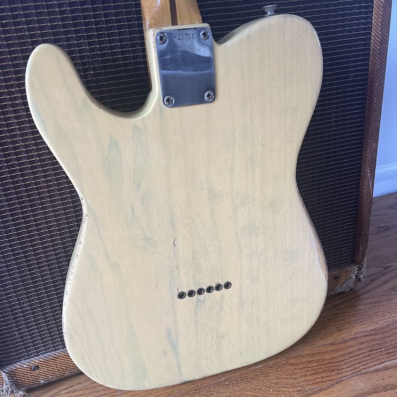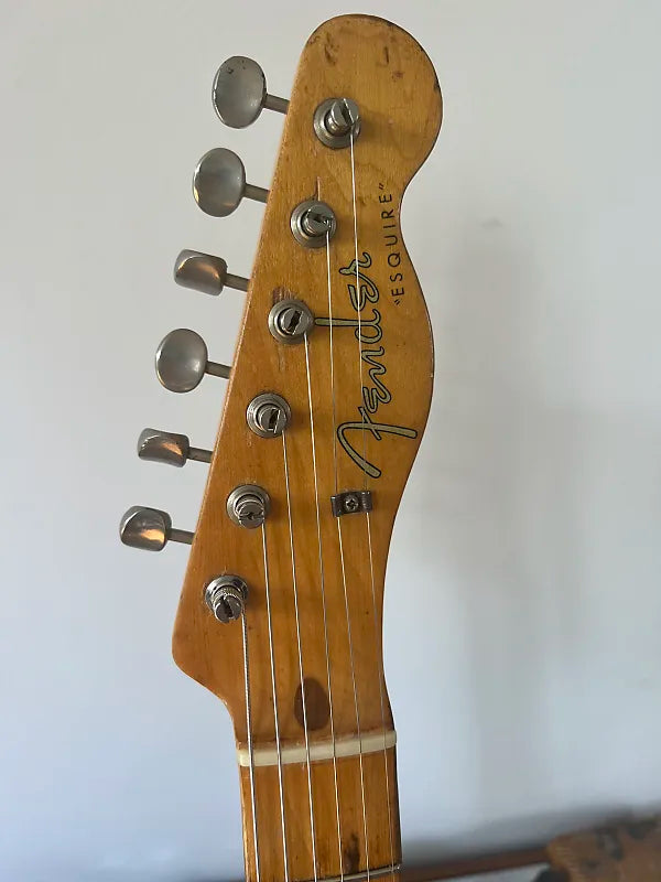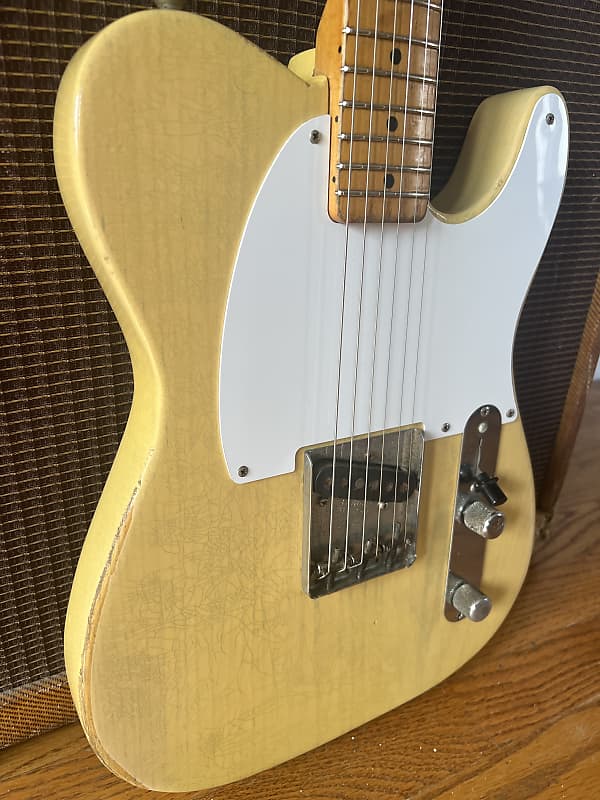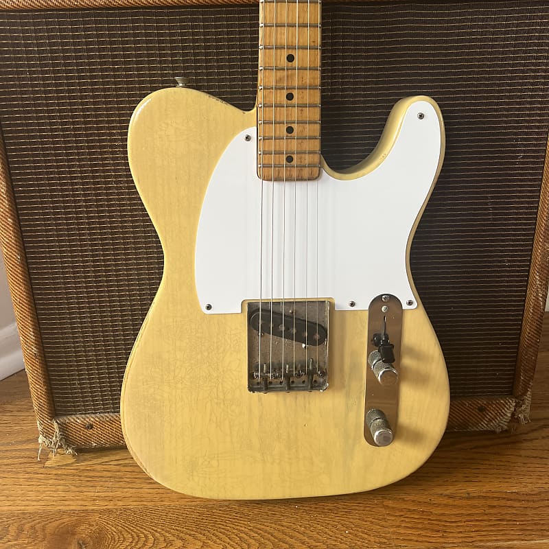 1957 Fender Esquire with a super cool and very old blonde refinish. This guitar was just expertly refretted with very slightly larger than factory frets. It plays effortlessly up and down the neck with its soft V neck profile (and check out that flame, even better in person). This guitar is all original with the exception of the tone pot, pickguard, and finish. The original bridge pickup was just rewound by Tom Brantley and sounds fabulous. This Esquire is ready to go for another 66 years. Comes with a non original newer tweed case.