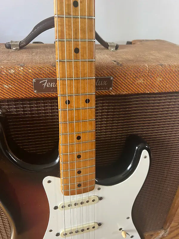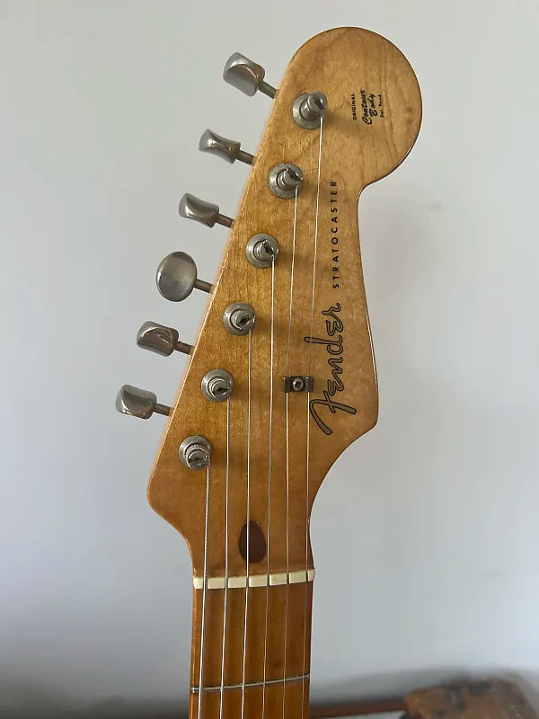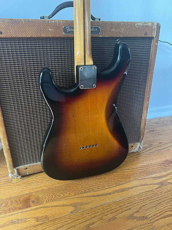 1959 Fender Hardtail Stratocaster. The guitar was refinished to a really nice and convincing period correct 3 Color Sunburst. I suspect it was done in the mid 60s, because the pots, middle pickup and tuners all date to the mid 60s. All else is original with the exception of a couple saddles, 5 way switch, and switch tip. This guitar plays great and sounds amazing. Comes with a newer tweed case.