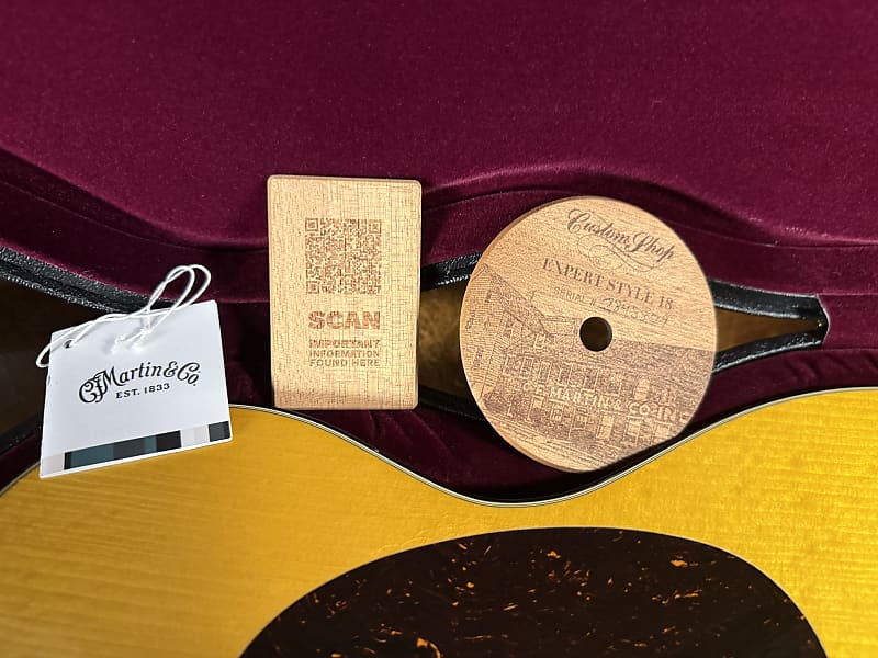 2024 Martin Custom Shop 000-18 Expert Style Aged. This guitar was just traded in by Brian Fallon of The Gaslight Anthem. This Custom Shop edition, built from Sinker Mahogany combines rich tonal qualities with extraordinary craftsmanship, offering a guitar that will stand the test of time, both in terms of sound and visual appeal. It includes key features rooted in the 1937 Authentic Series along with Hide Glue, Authentic bracing, and adjustable truss rods for performance and reliability. It's a choice for players who demand an instrument with history, character, and a voice that matures beautifully with every strum or pick. Brian added the LR baggs pickup, otherwise the guitar is in excellent shape. Comes with the original hard case and paperwork.
